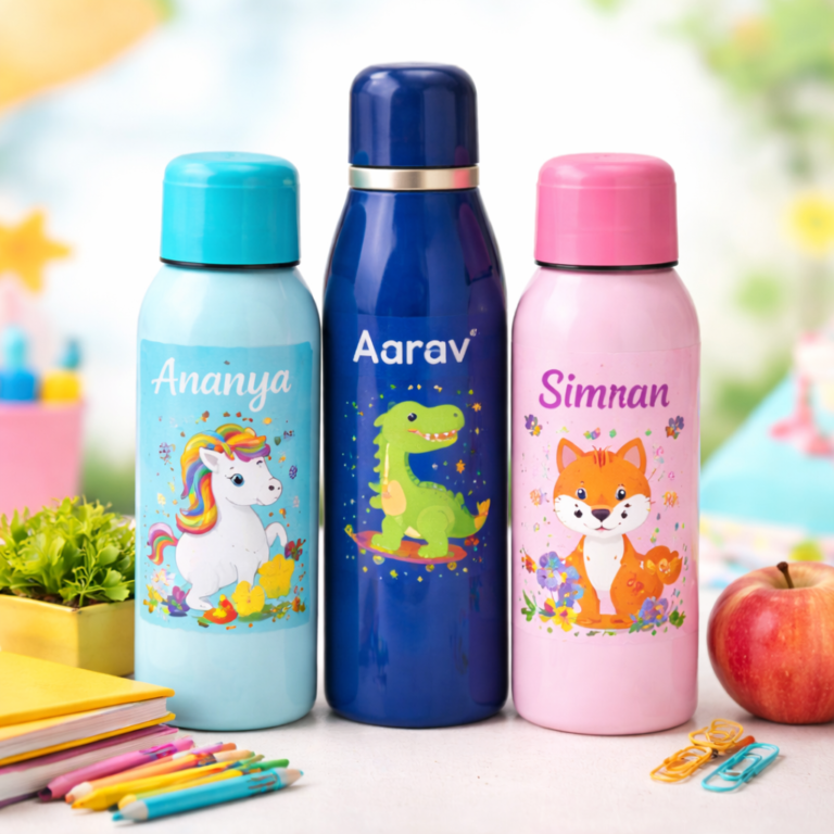 From water bottles to tiffin boxes and name labels, every product is crafted with care, safety, and durability in mind. Our designs are fun for kids and practical for parents — so nothing gets lost, mixed up, or forgotten again.